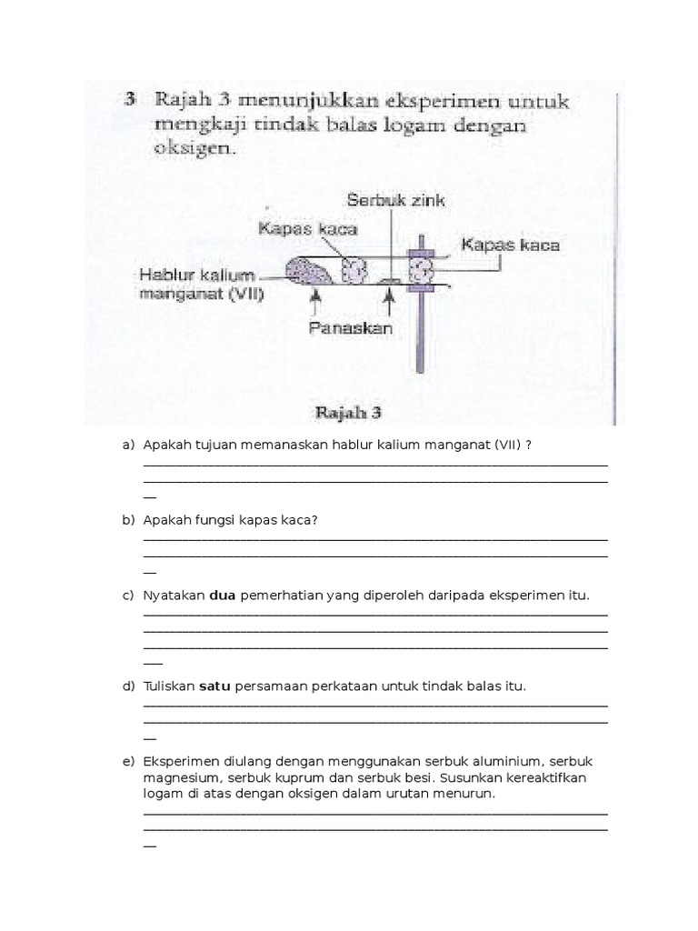 Tindak Balas Logam Dengan Oksigen / Bab 4 2 Siri Kereaktifan Logam Flip Ebook Pages 1 8 Anyflip Anyflip : Lee kuan yuin 80 views6 months ago.. Siri kereaktifan logam tindakbalas logam dengan oksigen. Logam kumpulan satu bertindak dengan gas oksigen membentuk logam oksida. Kakisan logam merupakan tindak balas redoks di mana logam dioksidakan secara semula jadi melalui kehilangan elektron untuk membentuk ion logam. Pemboleh ubah logam pemerhatian inferens. Senyawa kalium digunakan dalam pupuk kimia dan dalam pembuatan.
