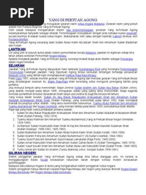 يڠدڤرتوان اݢوڠ), also known as the paramount ruler, the supreme head or the king. Berikut adalah senarai nama yang dipertuan agong di malaysia yang pernah menjawat jawatan ini dari tarikh merdeka sehingga kini merangkumi tempoh pemerintahan dan negeri asal. Jabatan ini digilirkan setiap lima tahun antara sembilan pemerintah negeri melayu. Start studying timbalan yang dipertuan agong. (15 nov 1984) synd kuala lumpur,malaysia: